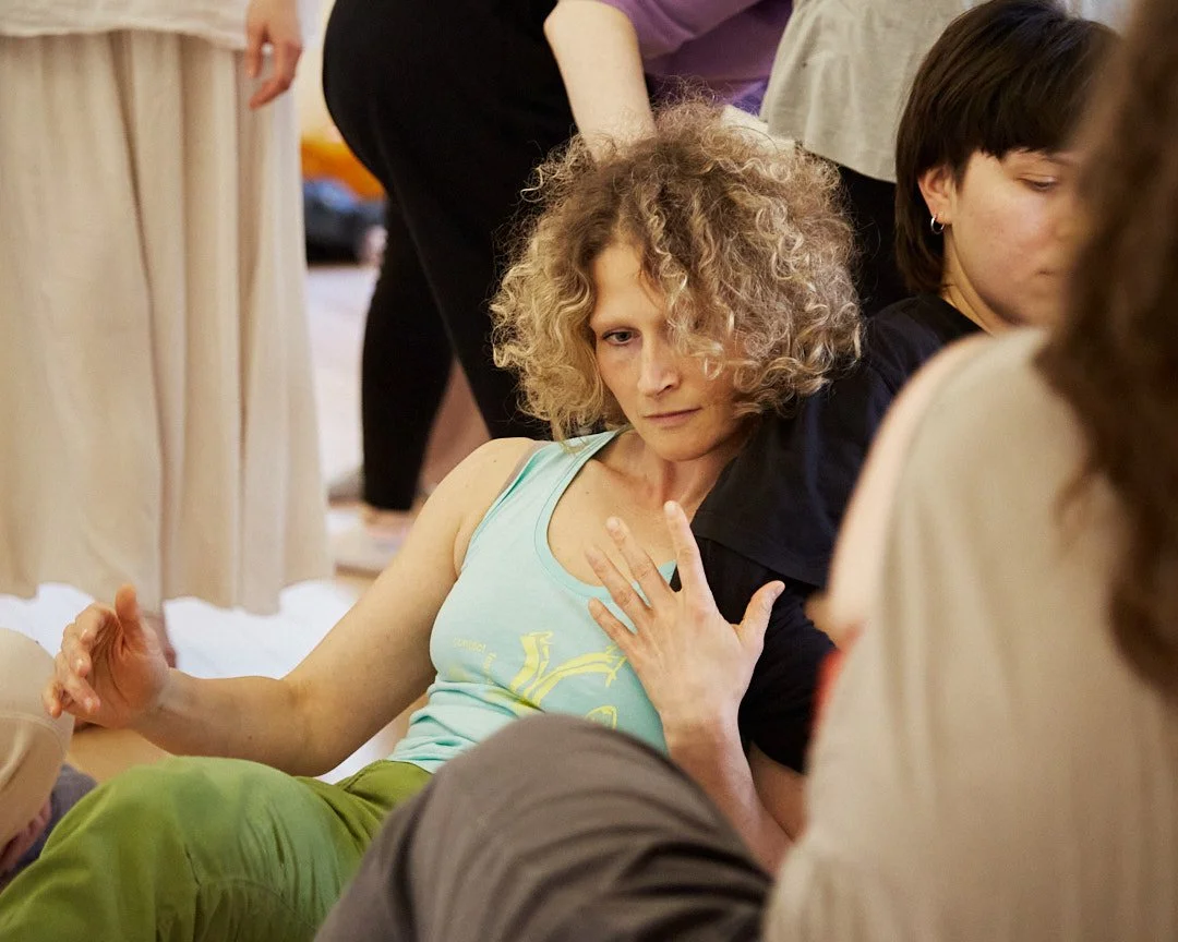 Her teaching approach is informed by experience in contemporary dance, improvisation, experiential anatomy, somatic movement, and yoga philosophy, providing a multidisciplinary foundation that supports exploration, creativity, and embodied learning in Contact Improvisation.